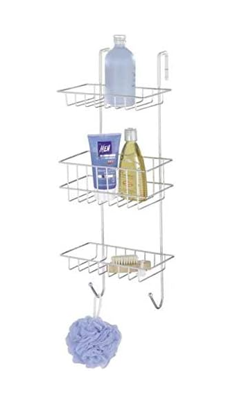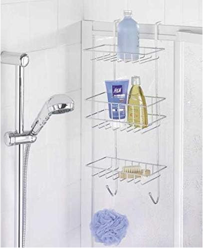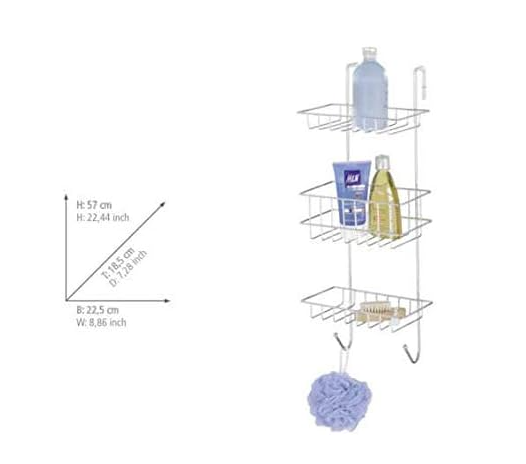 הארגונית מכילה 3 סללסות לאחסון שמפו, מרכך, סבון ועוד ו-2 ווים לתלית אביזרים