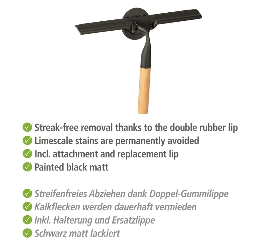 מגב ומתלה nמתכת בעל ידית במבוק למקלחת – בצבע שחור ועץ