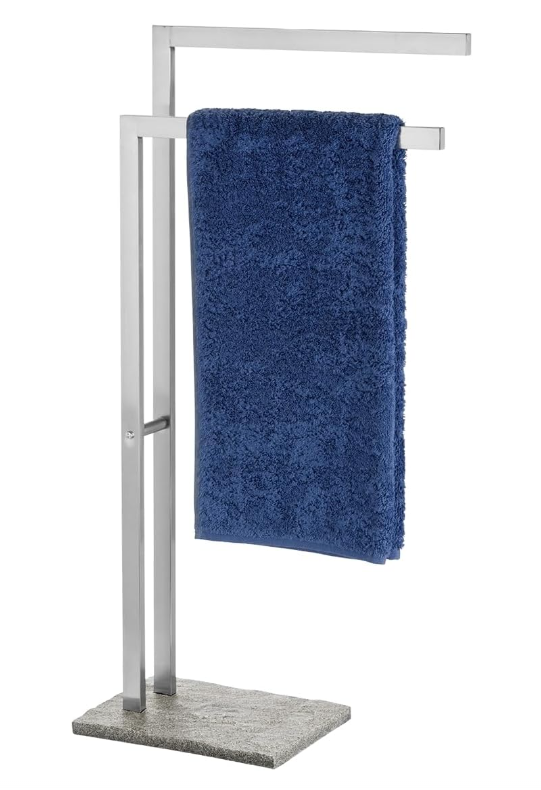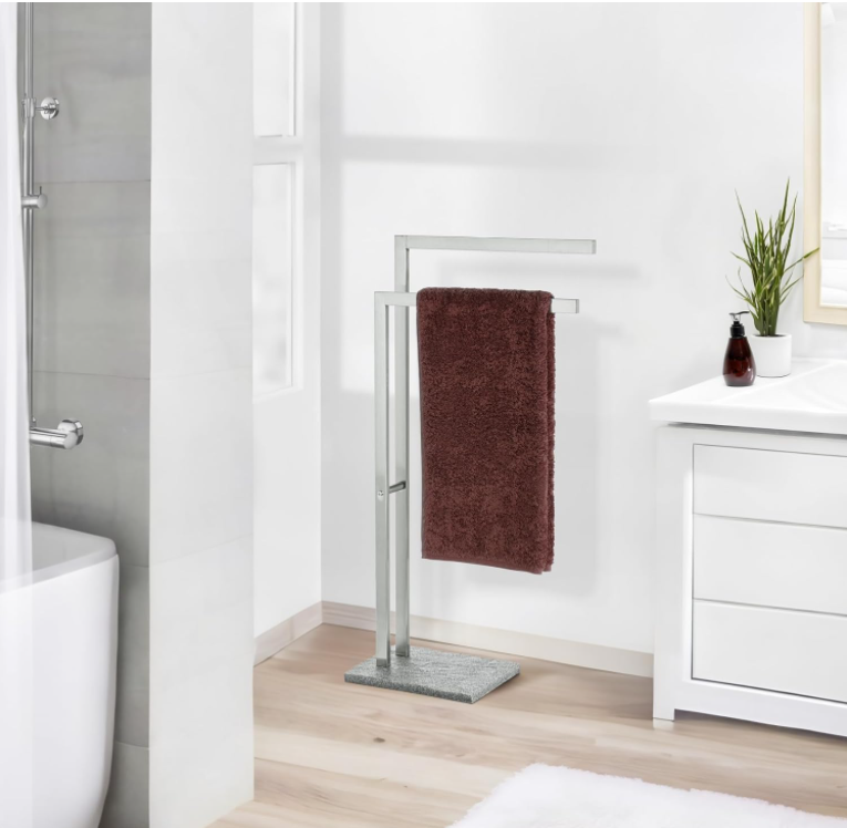 מתקן לייבוש מגבות, בצבע כסף בעל 2 מוטות במראה מרובע