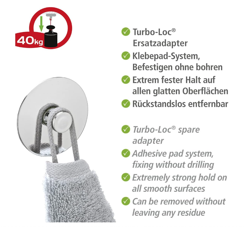 אין צורך בקידוח בקיר, נדבק בטכנווגית ® Turbo Loc